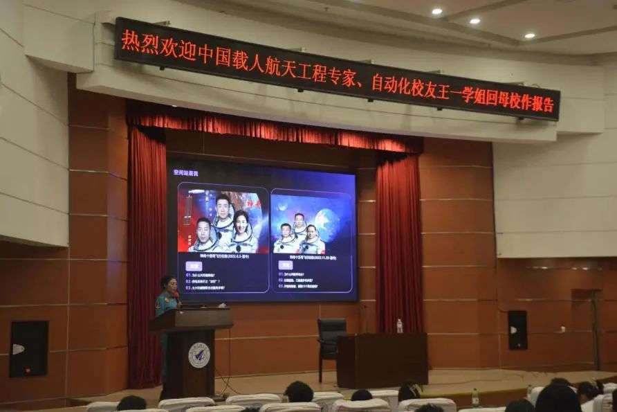 5月17日下午,中国载人航天工程专家、自动化学院2000级校友王一在图书馆国内报告厅为学院近300名师生代表作精彩报告,分享题目为《航天员的一天》,自动化学院党委书记石峰,智慧学校建设办公室(信息网络中心)主任王浩天,自动化学院党委副书记高得伦、实验中心主任李化鹏以及部分学院教师代表出席了本次活动。报告期间,王一校友积极与同学们互动交流,并通过对航天员日常生活中诸多细节的讲述,帮助同学们深入了解到很多有趣且宝贵的航天知识,更让同学们深刻感受到了中国航天人肩负的神圣使命以及对祖国航天事业的无比热爱!