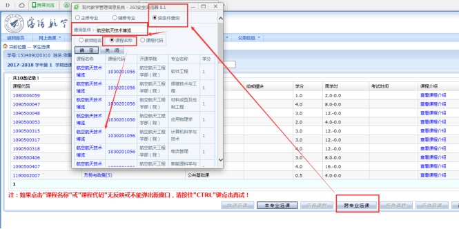 --跨专业选课--按条件查询--课程名称,输入课程名称查找课程(弹出的兴趣学分那个不用管直接关掉)