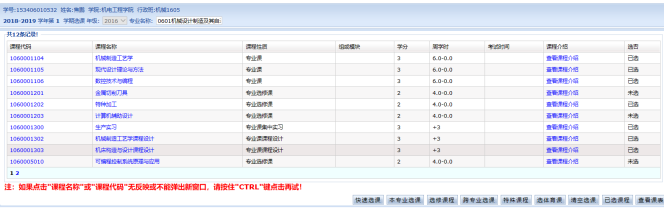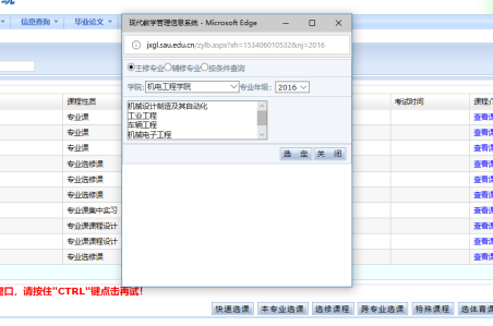 举例:15级机电工程学院,机械设计制造及其自动化专业学生,降级到16级,选《机电传动与控制课程设计》时,选错想退选,步骤如下: