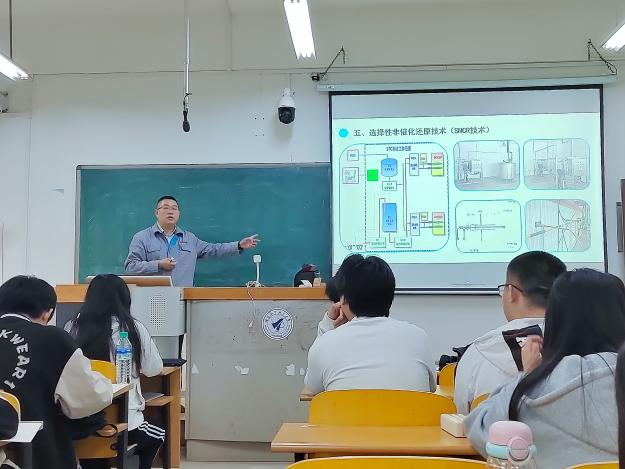 企业代表王炳凯副总经理受邀走进课堂,结合企业实践案例为学院新能源科学与工程专业2023级同学们上了一堂生动的《燃烧学》课程,与同学们互动探讨了超低排放的实现路径,增强了同学们的学用结合体验和专业自信,将生态文明思想融入课程,得到同学们的欢迎和好评。