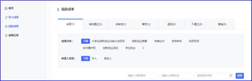 查看项目成果的审核状态和成果分类,或查询参与其他人的成果项目。