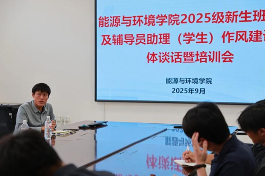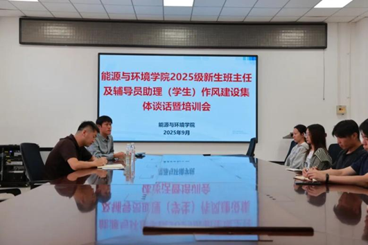 近日,能源与环境学院召开2025级新生班主任、辅导员助理(学生)作风建设集体谈话暨专题培训会,学院领导党委书记李秉硕、党委副书记王晓旭、2025级辅导员刘大稚参加会议。