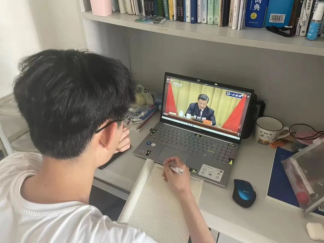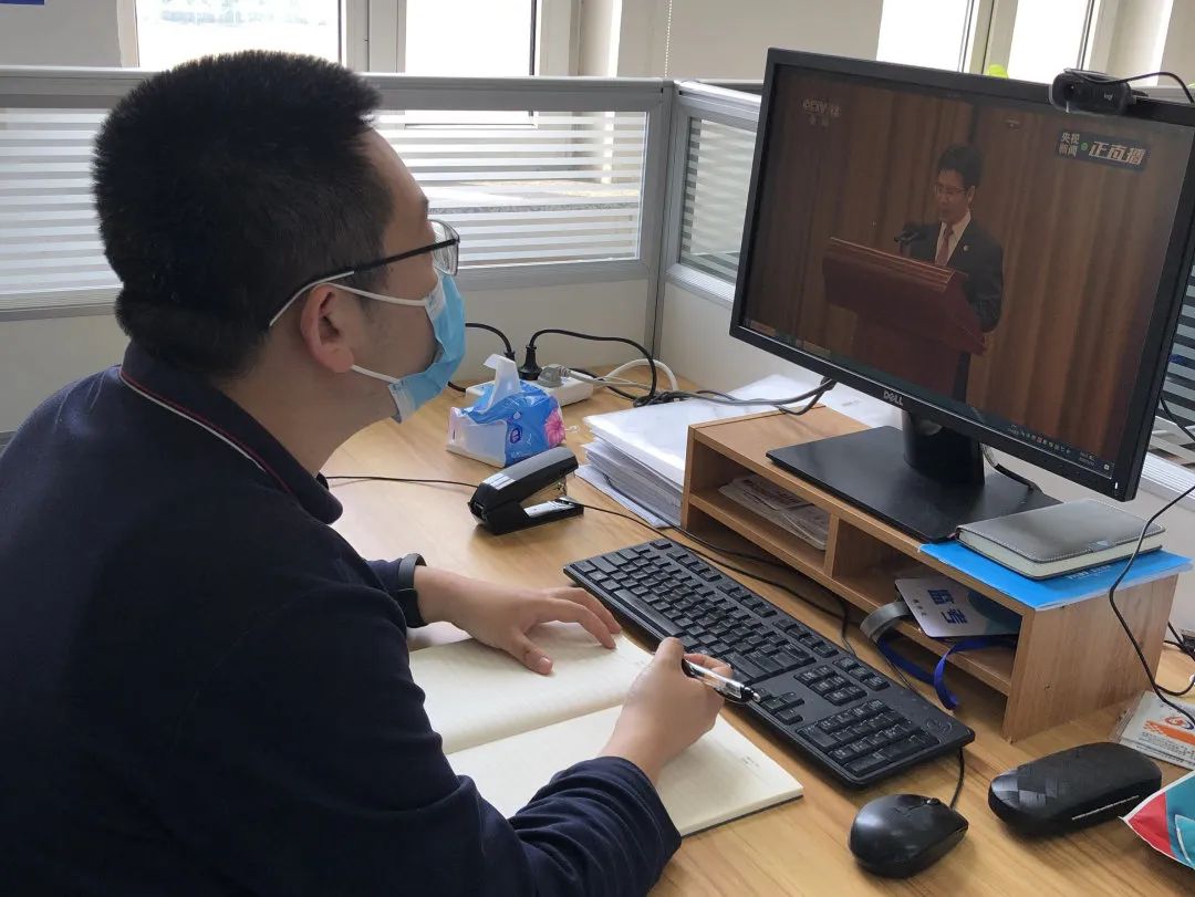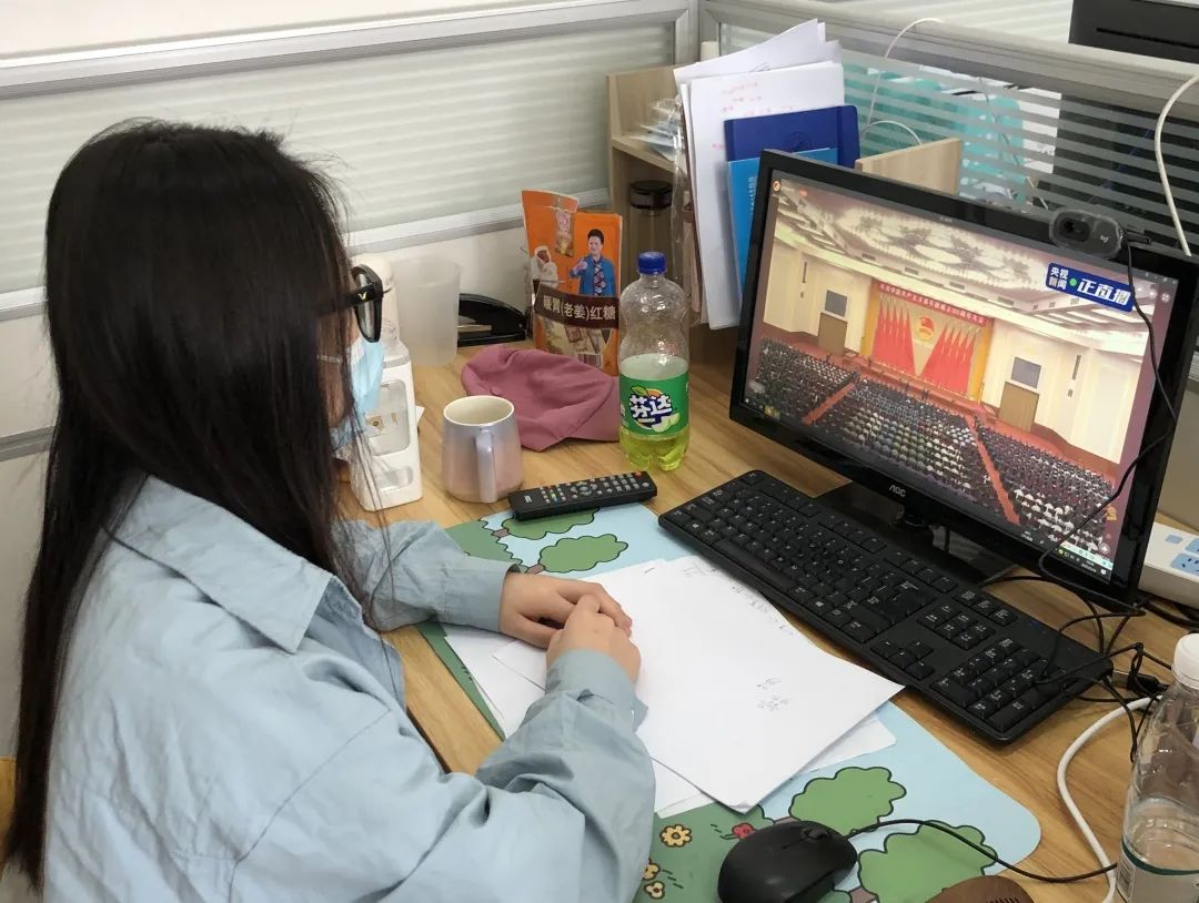 主会场外,党委副书记孙莉带领全体在校辅导员在办公室观看了大会盛况。能源与环境学院全体师生,分别通过线上形式自行学习。