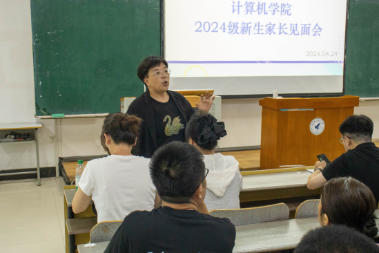 家校同心同行,共筑成长之阶。为进一步加强家校联系,帮助家长了解学校的教育理念与发展前景,计算机学院在顺利完成新生报到接待工作后,于8月24日下午召开2024级新生家长线下见面会。计算机学院党委书记丁国辉、计算机学院院长赵亮、计算机学院党委副书记刘鲲、计算机学院教学院长滕一平,计算机学院研究生院长李佳佳、2024级新生班主任出席会议,2024级辅导员周垠硕主持会议。