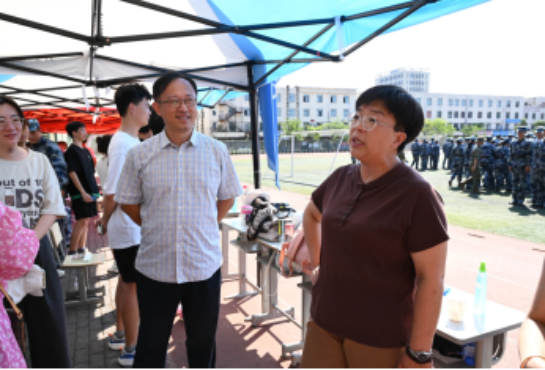 刘书记深知军训对学生们的重要性,她强调:“军训是大学生涯中不可或缺的一部分,它不仅锻炼了身体,更磨练了意志”,她细致入微地关怀着每一位学生,对参与见习的同学们更是频频叮咛,要他们合理安排作息,保证充足休息。同时,她温馨地提醒大家,在勤奋刻苦、积极投入军训训练的同时,切不可忽视对身体的呵护与保养。全体教师满怀深情地寄望于学生们,希望他们能在军训期间既强健体魄又收获快乐,坚信这段时光将会成为他们大学生活中一段深刻而珍贵的记忆。