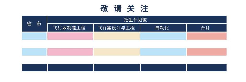 学院招生纳入国家普通高等教育招生计划,2022年学院计划在*个省市招收*名全日制本科学生,学校招生代码*。其中:飞行器制造工程专业 (082003H) 招收*人、飞行器设计与工程专业(082002H) 招收*人、自动化专业(080801H)招收*人。