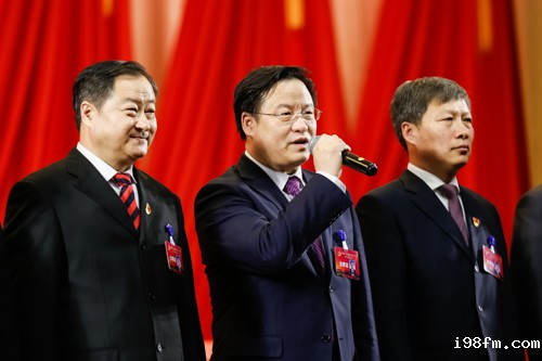 王峰同志带领新当选的纪委委员与代表进行了见面并作表态发言。