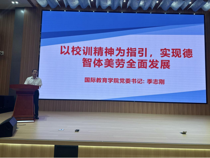 为帮助新生扣好进入大学后的“第一粒扣子”,明确成长方向,国际教育学院启动了新生入学思政教育系列活动,2025年9月21日在3号教学楼101报告厅召开2025级新生思政教育课。学院党委书记季志刚、学院党委专职组织员王梦琪和全体2025级新生参会,会议由辅导员王浩老师主持。