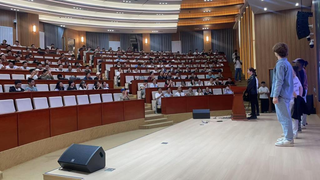 宣讲期间还邀请了几位留学生上台做自我介绍。他们用中文或英文分享了本国文化与留学感受,真诚流畅的表达让现场气氛逐渐活跃,也让同学们感受到了不同国家的文化特色。