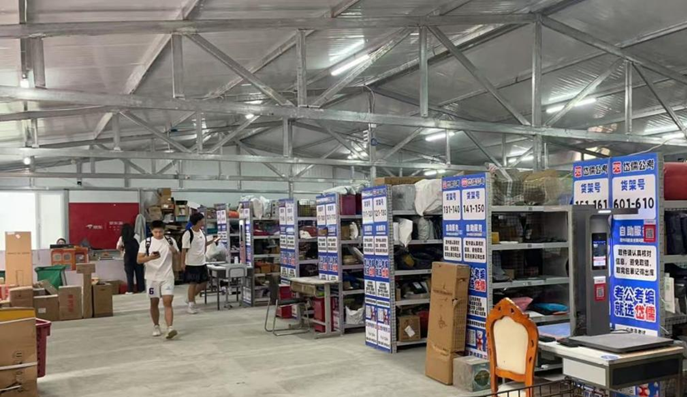 随着校园快递业务量逐年增长,南区“近邻宝”日均快递处理量已达3600余件,新生开学等高峰期更是攀升至 5500余件。为满足日益增长的存储需求,资产处在新址新建 450平方米彩钢房作为快递存储及服务场地,满仓存储量可达12000件,完全覆盖师生快递接收需求。同时,服务点内部科学规划区域布局:快递货架按编号有序排列,方便师生快速查找;大件快递设置独立存放区,避免挤压损坏,进一步提升了快递管理的规范性与高效性。即便遭遇恶劣天气,室内取件模式也能确保快递服务不受影响。