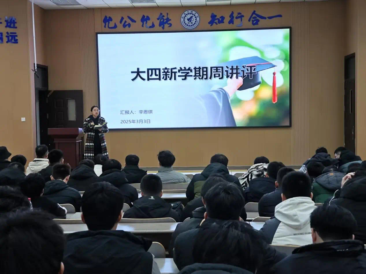机电工程学院学工办统一思想认识,学院党委副书记赵亚风以近期工作重点任务为出发点,紧密结合重点工作内容与各年级实际情况,梳理工作思路,部署开展周讲评工作。要求基础工作抓质量,常规工作抓规范,重点工作抓落实。2025年3月2日,全体辅导员开展周讲评,各年级学生全员参与本次周讲评专题课。