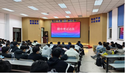 为帮助2024级学生明确备考方向,筑牢诚信应考底线,切实做好英语四六级考试与期中考试准备工作,2025年10月12日,我院在机械馆101报告厅召开2024级英语四六级考试暨期中考试动员大会。2024级辅导员王兰梦、赵重光结合学生实际情况开展动员宣讲。