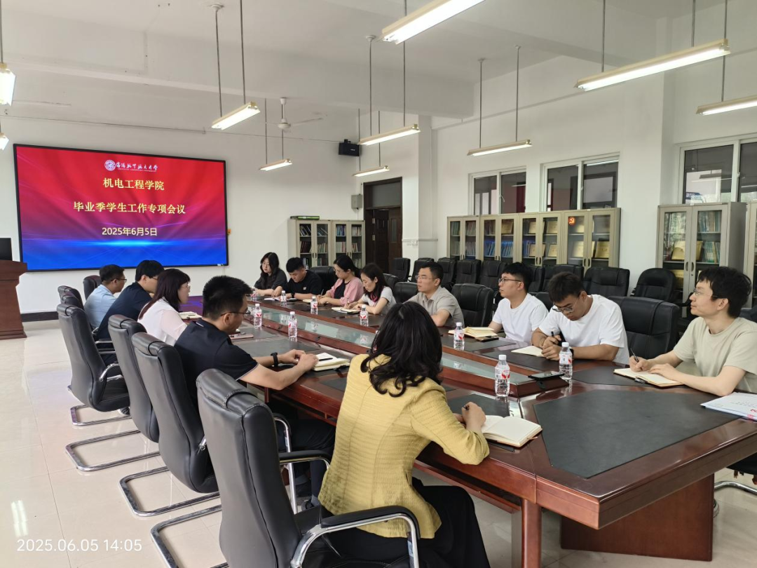 6月5日,机电工程学院在机械馆5楼会议室召开2025年毕业季安全稳定专项工作会议。会议由党委副书记、副院长谭红主持。学院领导班子成员、全体组织员、全体辅导员、全体学生党支部书记参加会议。
