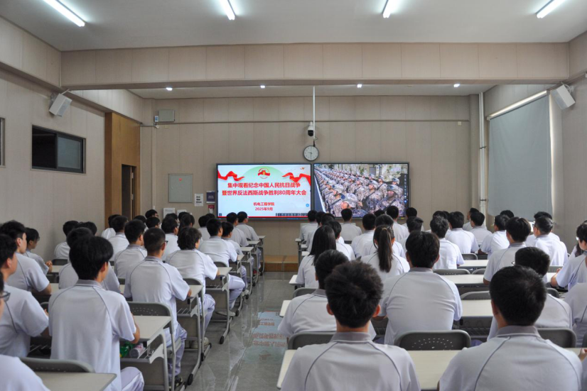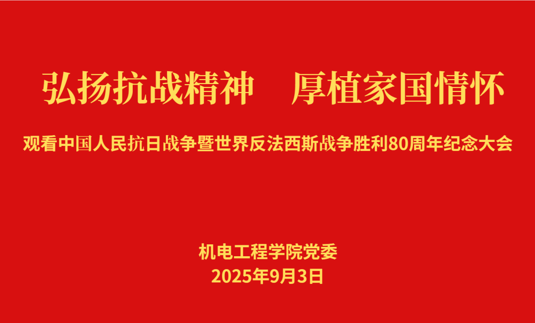 9月3日上午,机电工程学院党委组织集中观看中国人民抗日战争暨世界反法西斯战争胜利80周年纪念大会,学院通过五个分会场组织全院教职工与师生党员同步收看大会直播。
