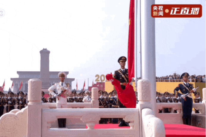 上午9时,纪念大会正式启幕。当雄壮的《义勇军进行曲》响彻天安门广场,现场全体师生肃然起立,高唱国歌。
