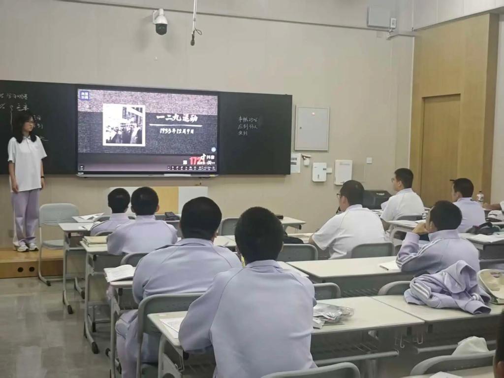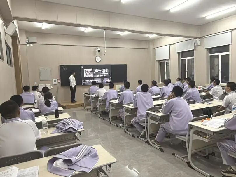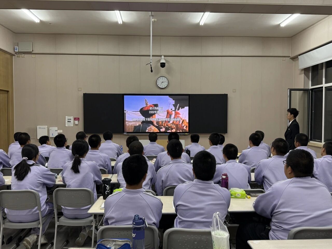 全体同学共同观看历史纪录片。影片中,日军践踏东北的残酷、东北军浴血抵抗的悲壮、民众流离失所的苦难画面,令现场气氛凝重。这份跨越时空的坚守,让大家更真切体会到“国家富强、民族复兴”的来之不易。