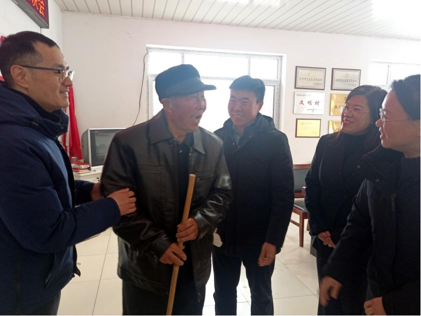 座谈环节,学院一行与村支部班子、党员代表展开深入交流。学院一行为现场党龄50年的老党员送去慰问,表达对老党员的敬意与关怀。