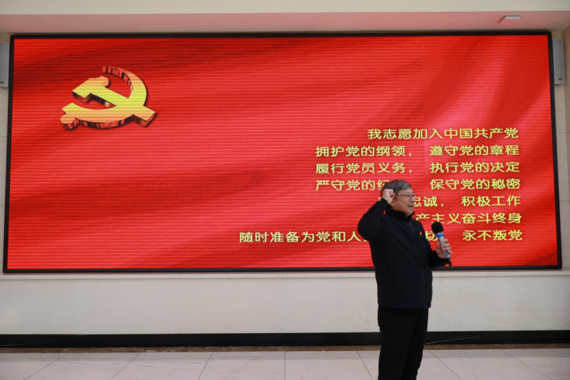 在辽宁省教学名师、学院离退休教师党员单宝峰教授的领誓下,全体党员重温入党誓词,铮铮誓言回荡现场,初心与使命在庄严承诺中再次升华。