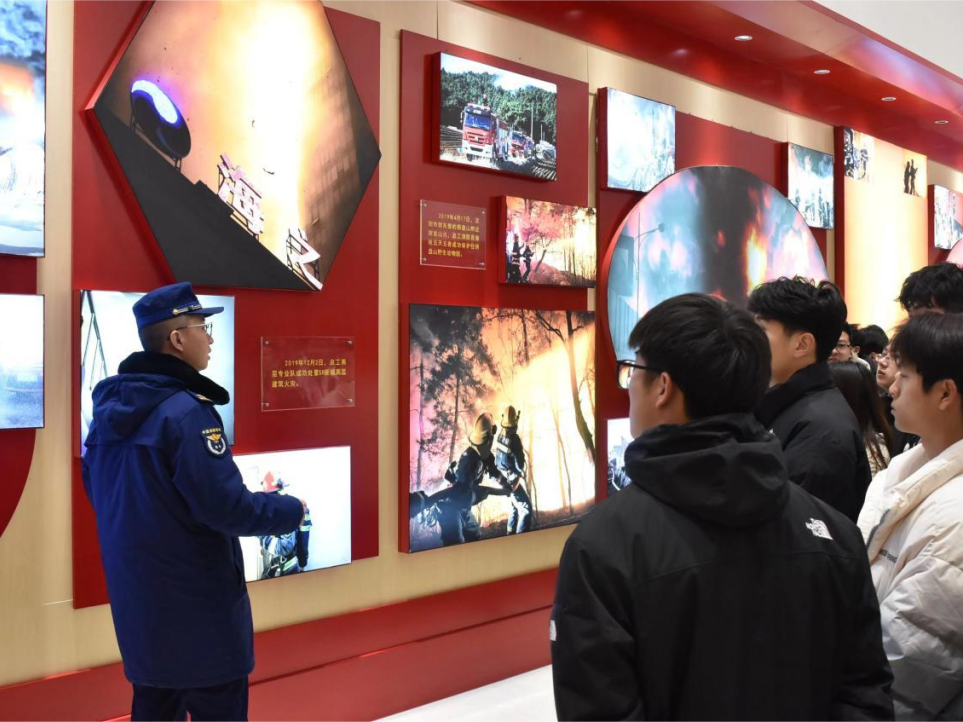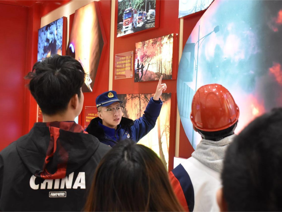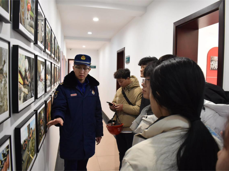 在队史馆,讲解员向同学们介绍了启工消防救援站的队伍发展、历任领导、光辉历程等情况。用一个个精彩生动的感人事迹全面反映启工消防从小到大、从无到有的成长历程。启工站先后被国务院、中央军委授予“英勇善战的消防铁军”荣誉称号,被中共中央授予“全国先进基层党组织”称号,是全国唯一一支两次被公安部授称、两次被应急管理部表彰的消防救援站,荣获全国学雷锋活动示范点,是全国消防救援队伍一面鲜艳的旗帜。