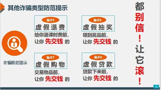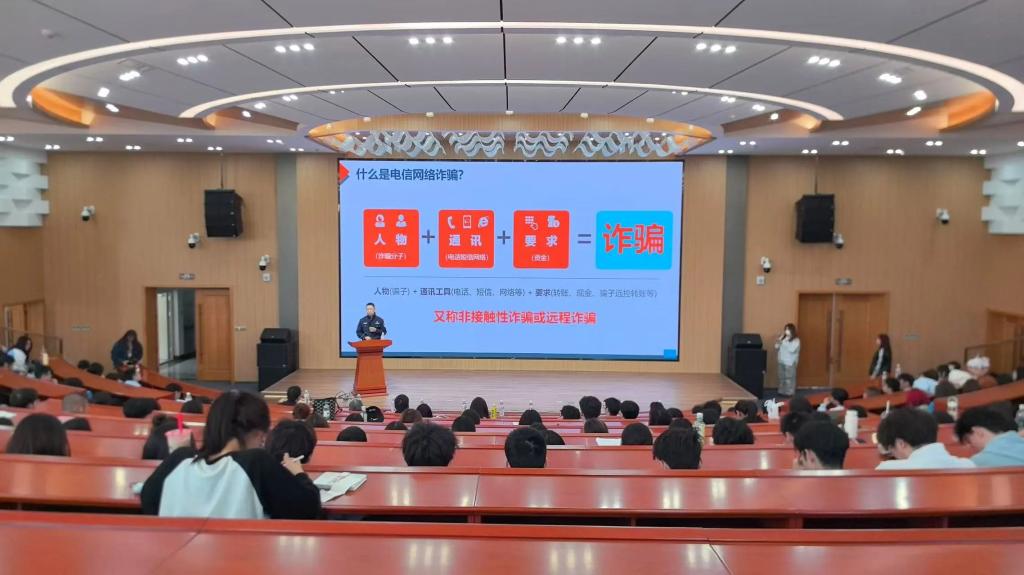 紧接着王旭海队长又详细列举了刷单诈骗、冒充熟人诈骗、网络贷款诈骗等多种常见类型,每讲一种类型,都结合具体案例分析诈骗分子的作案手法,并针对性地给出防范方法,在场的同学们纷纷点头记录,直呼实用。最后,王旭海大队长强调,同学们不仅要防范被骗,更要强化法律意识,不参与任何与电诈相关的活动。通过讲解相关法律条文和案例,让同学们明白法律的底线不可触碰。