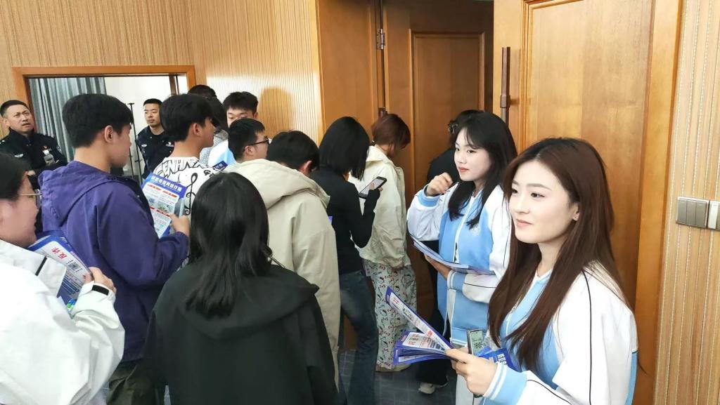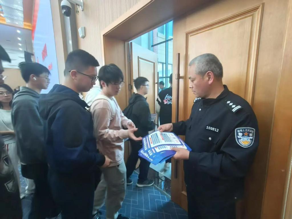 讲座结束之后,王旭海队长呼吁同学们积极参与反诈行动,在日常学习生活中要提高警惕,守护好自己的财物安全,同时也要向身边人宣传反诈知识,让更多人远离诈骗危害。最后,正良派出所孟警官带领现场志愿者组织同学们扫描公安局企业微信,方便后续咨询,并发放反诈传单,进一步巩固学习效果。
