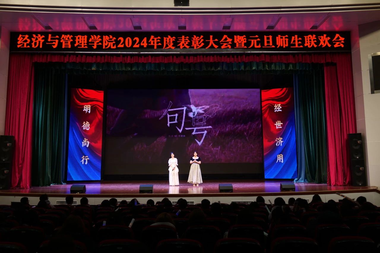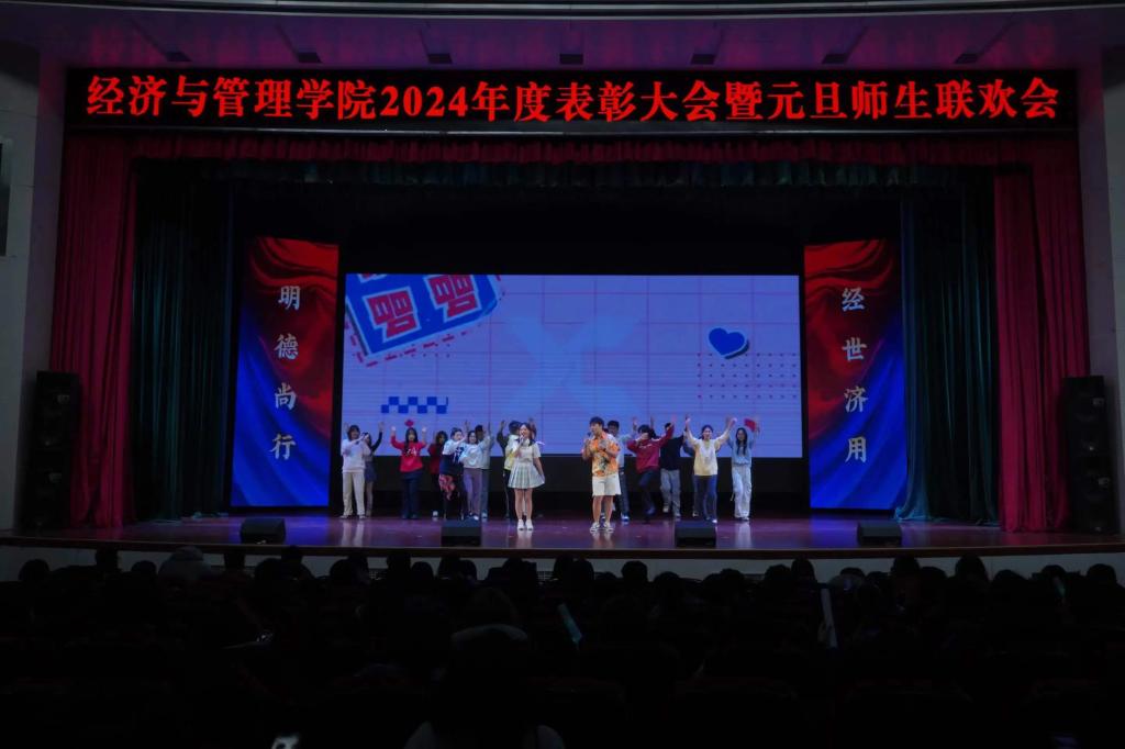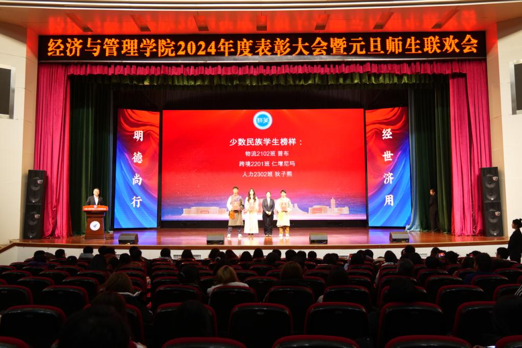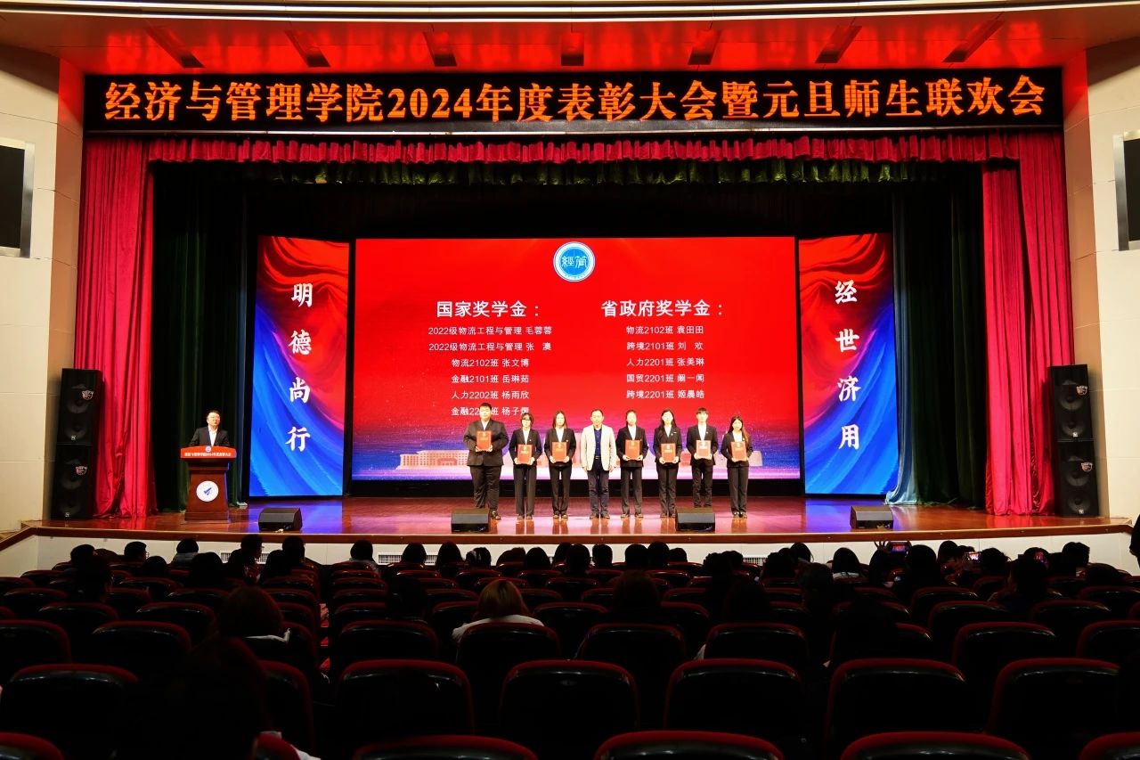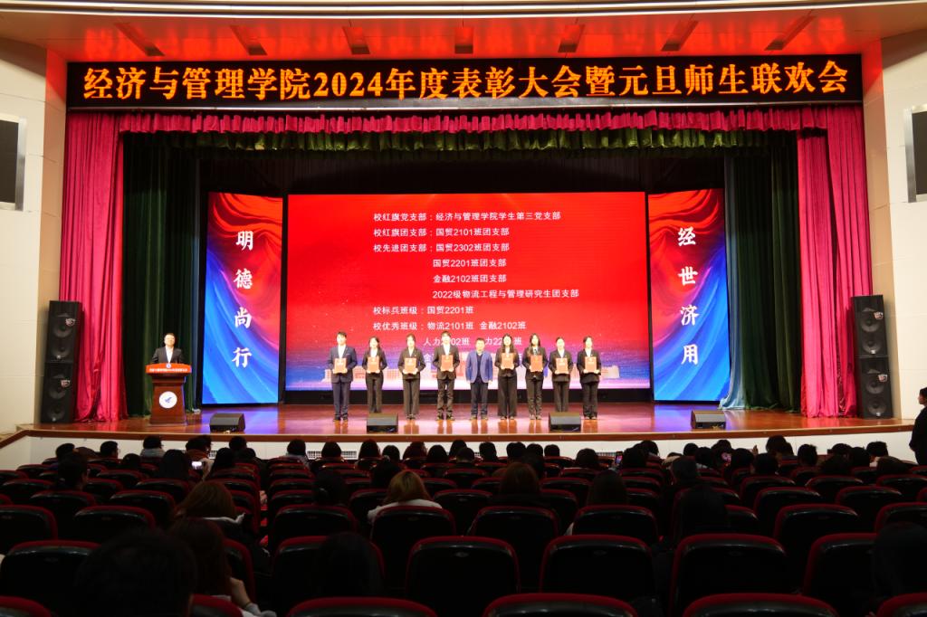 经济与管理学院党委书记高丹宣读2024年度经济与管理学院先进集体和先进个人等表彰名单,向努力学习提升自己的同学榜样提出表扬,对认真负责的优秀教师队伍给予肯定。