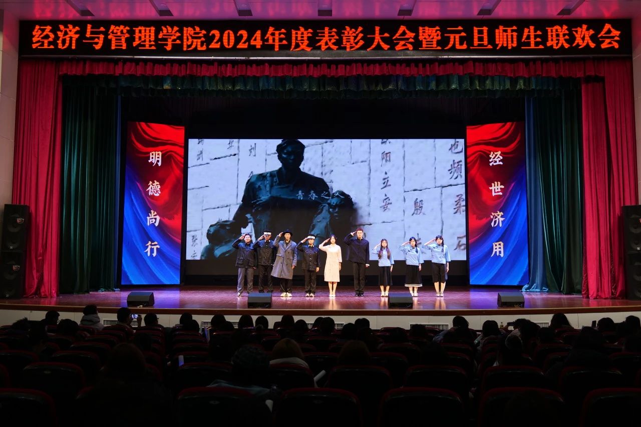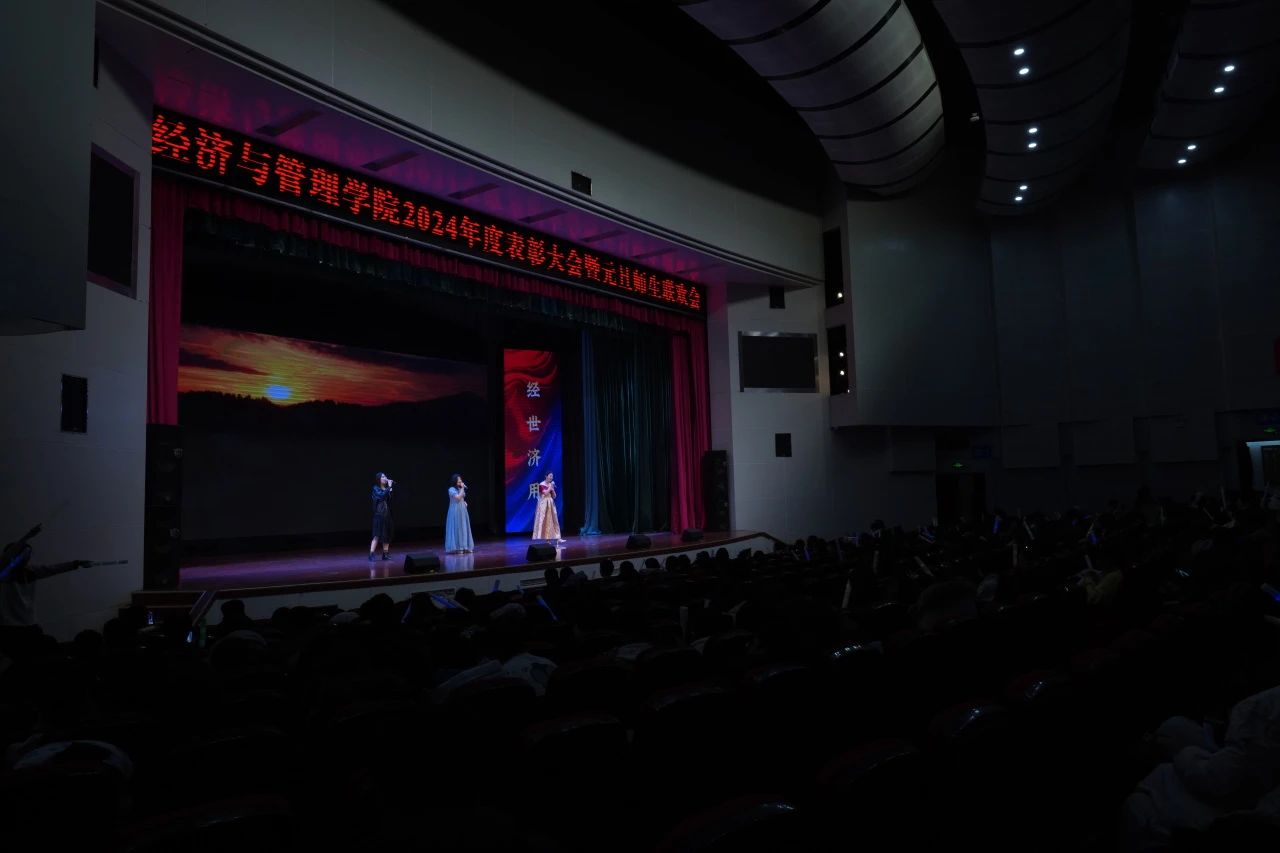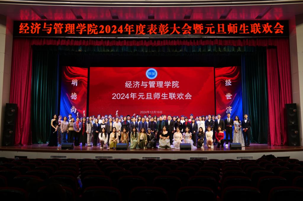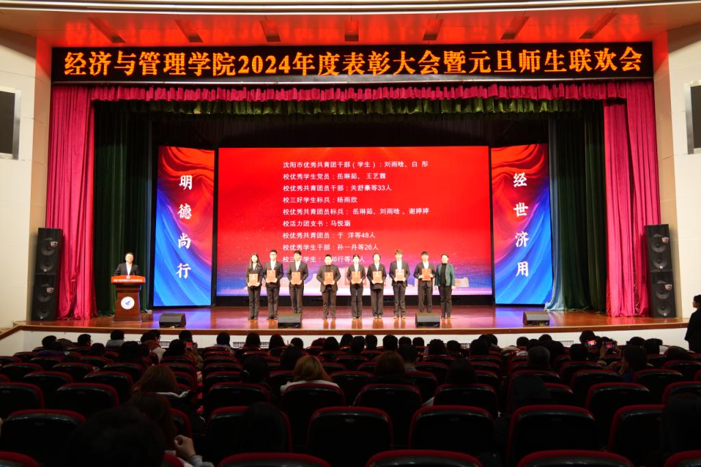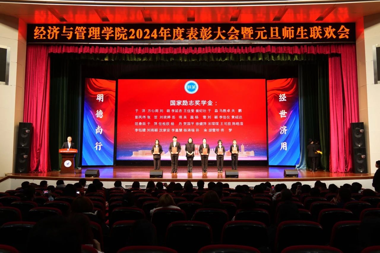 经济与管理学院党委书记高丹宣读2024年度经济与管理学院先进集体和先进个人等表彰名单,向努力学习提升自己的同学榜样提出表扬,对认真负责的优秀教师队伍给予肯定。
