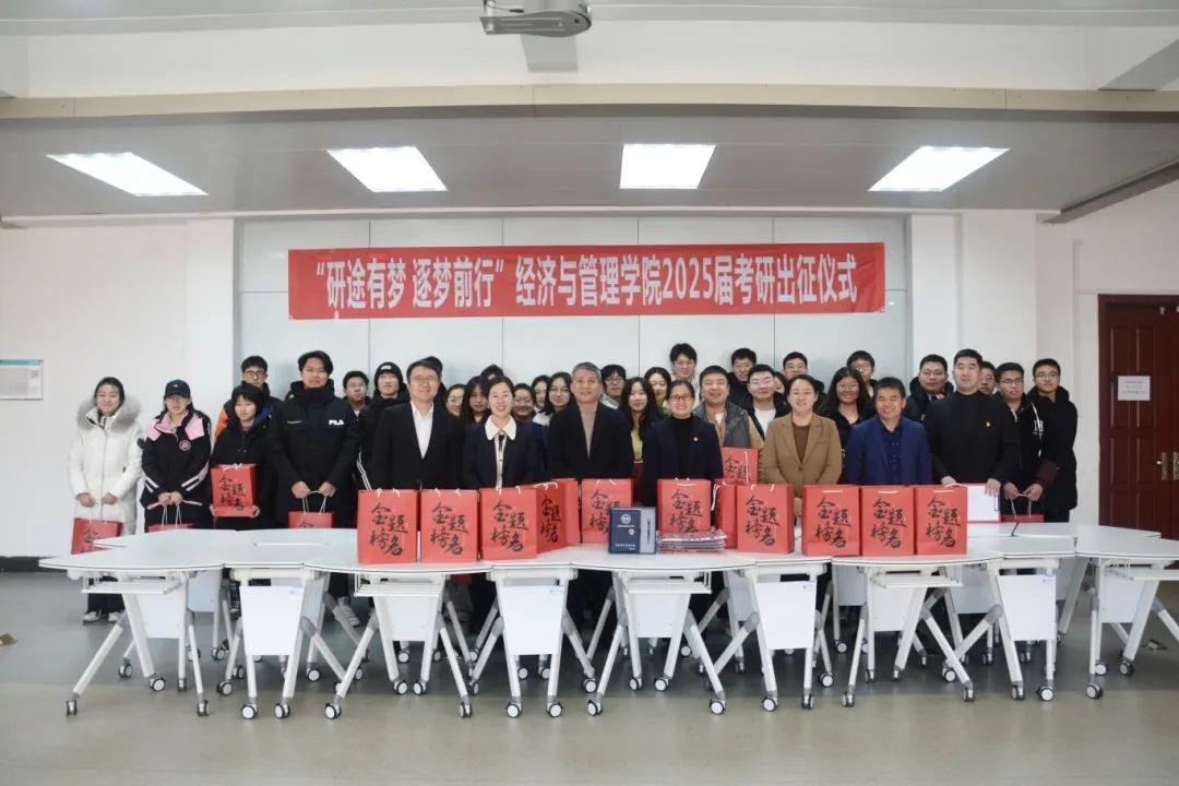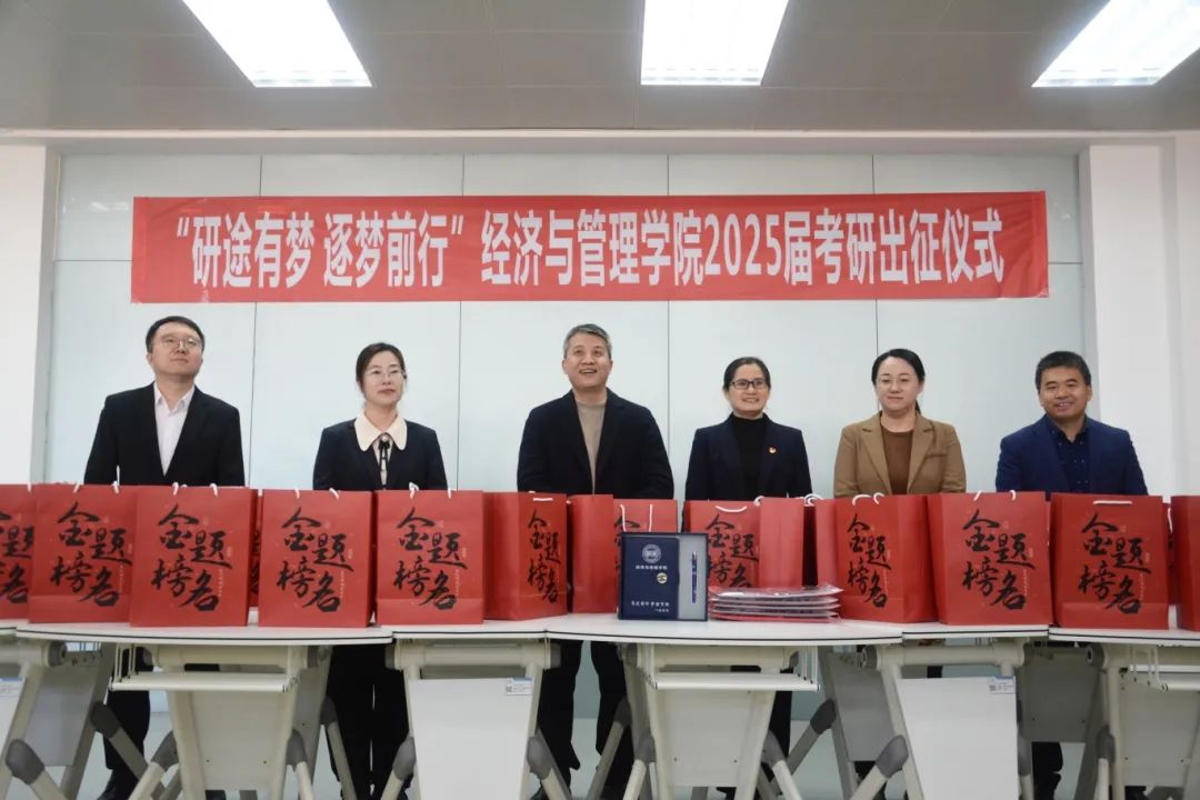 12月18日,经济与管理学院举行2025届毕业生考研出征仪式,学院全体领导班子参加,仪式由2021级辅导员张楠主持。