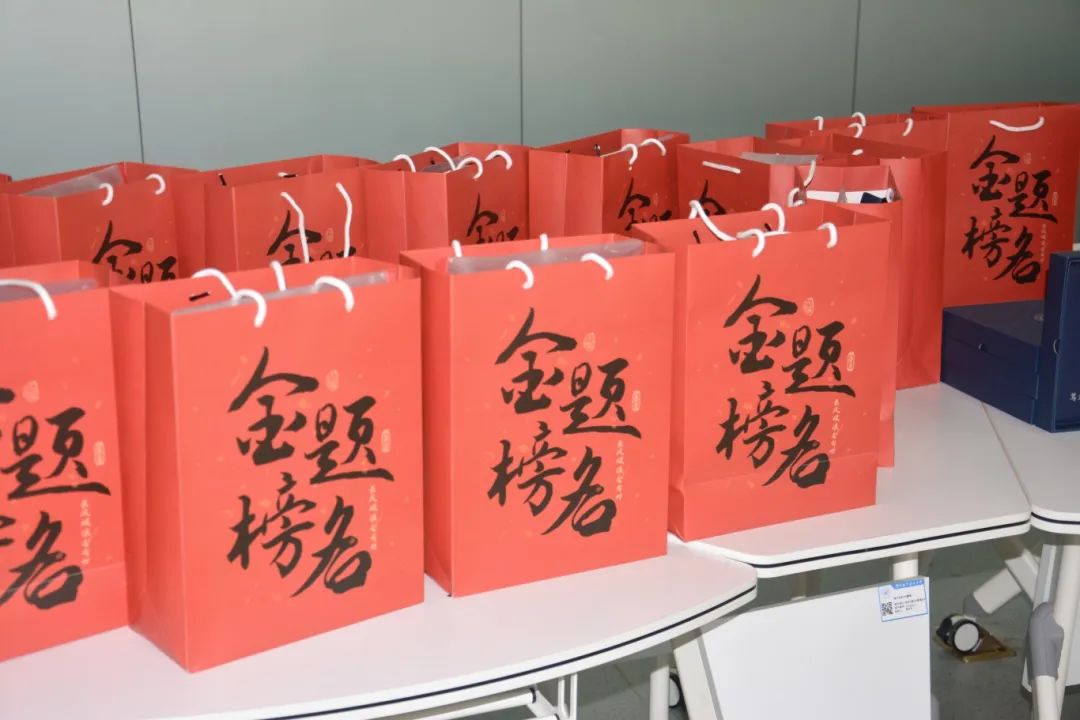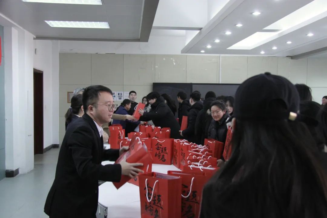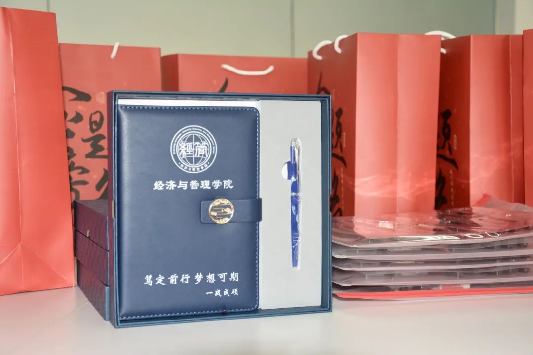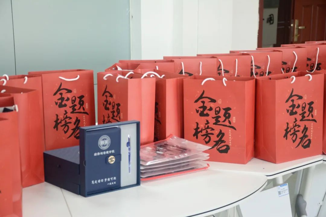 仪式现场,学院为每位学生准备了精致的“加油包”,加油包虽小,却心意满满。它精心收纳着各类实用文具,为考场驰骋备好“兵器”。并由学院领导亲自分发给每位学生。它承载着期盼,希望你们在考场上思如泉涌,笔下生花,成功攻克每一道难题,顺利实现自己的考研梦想。