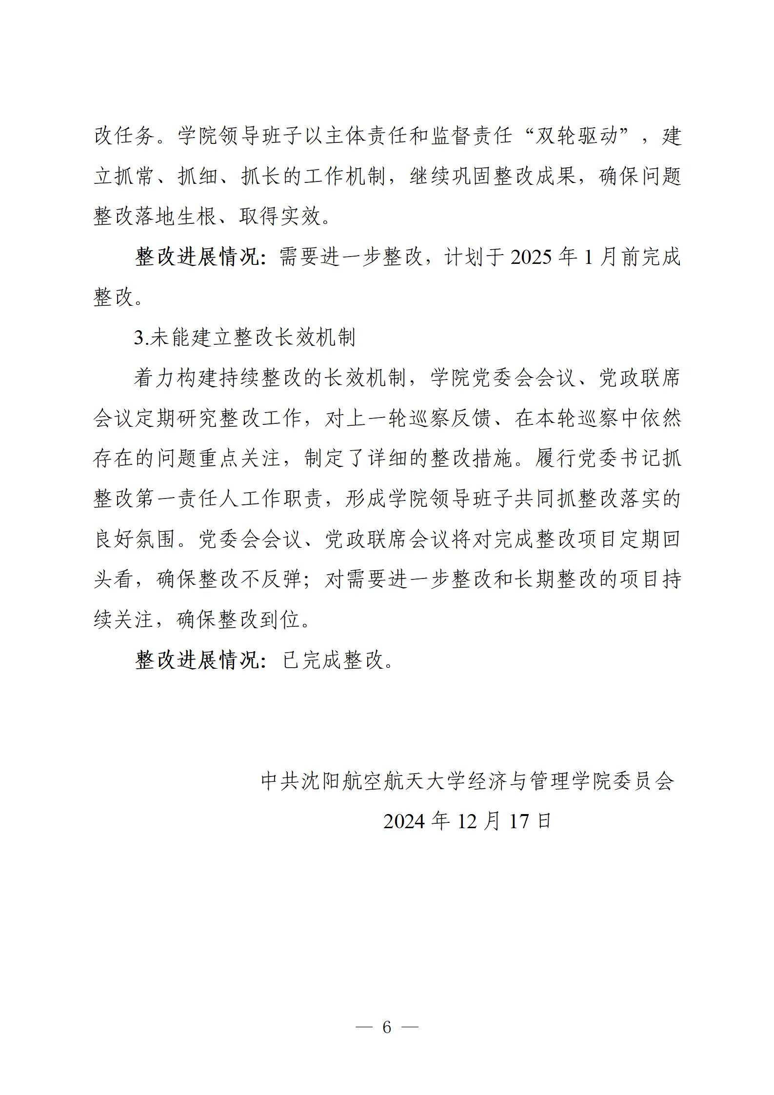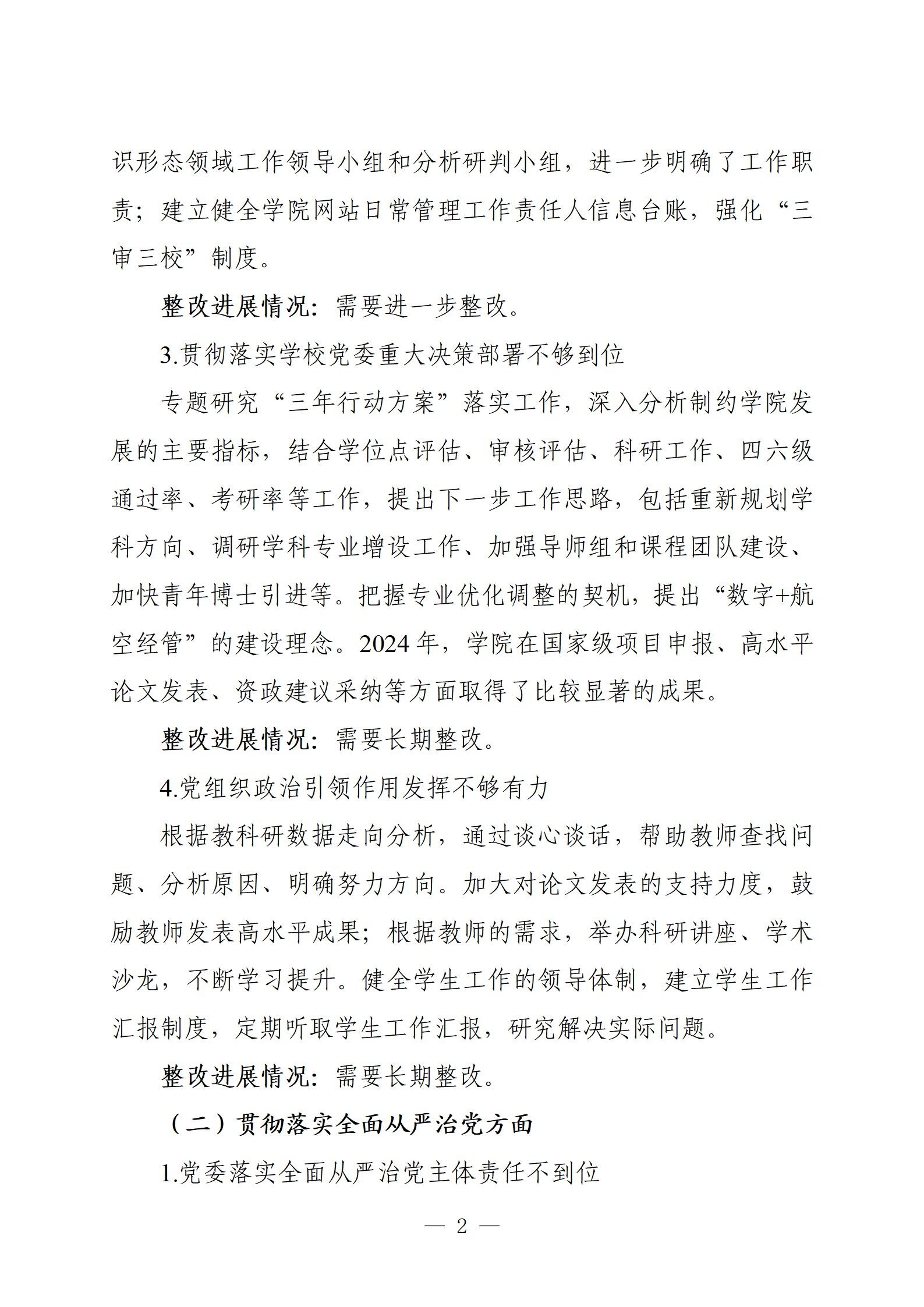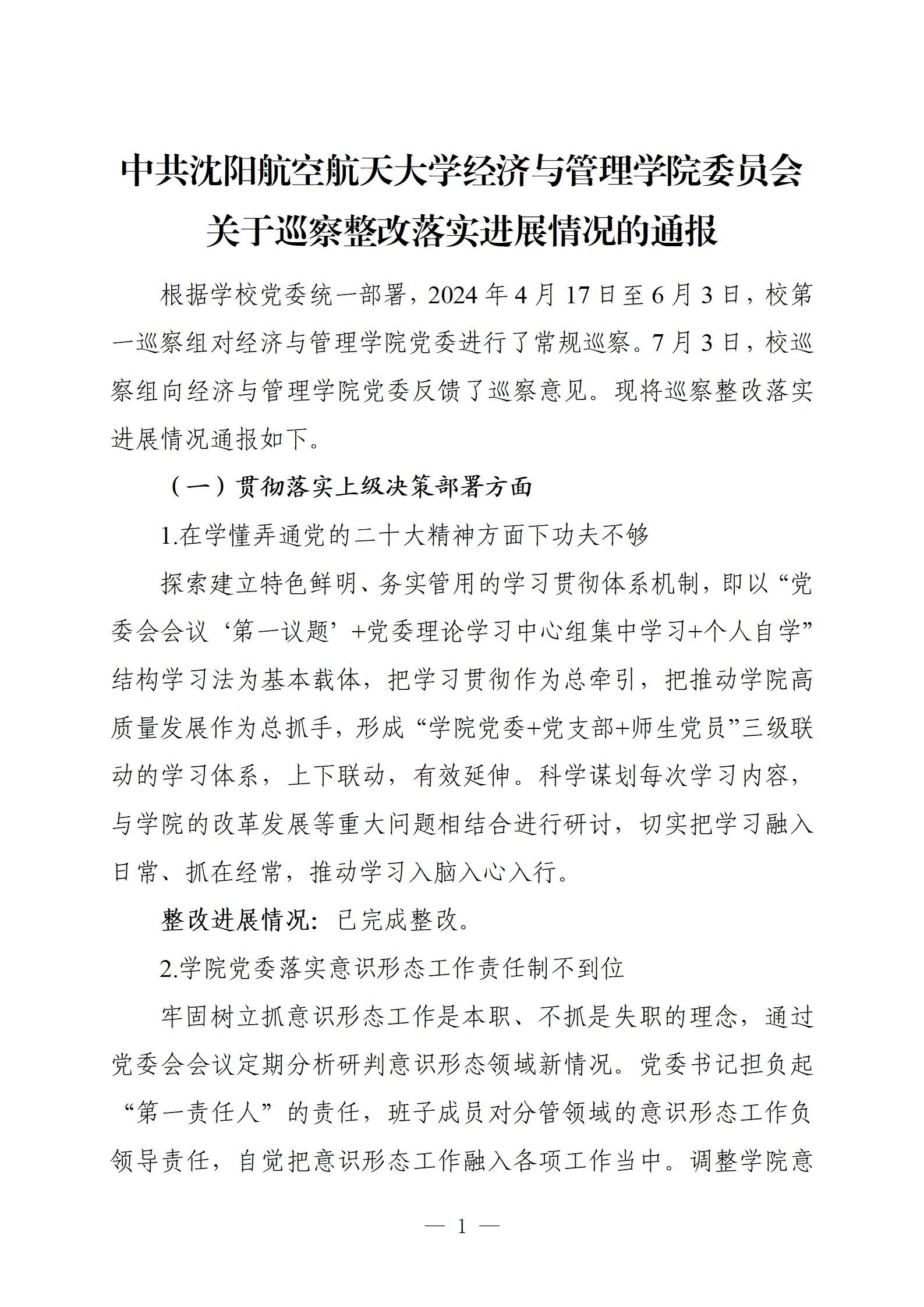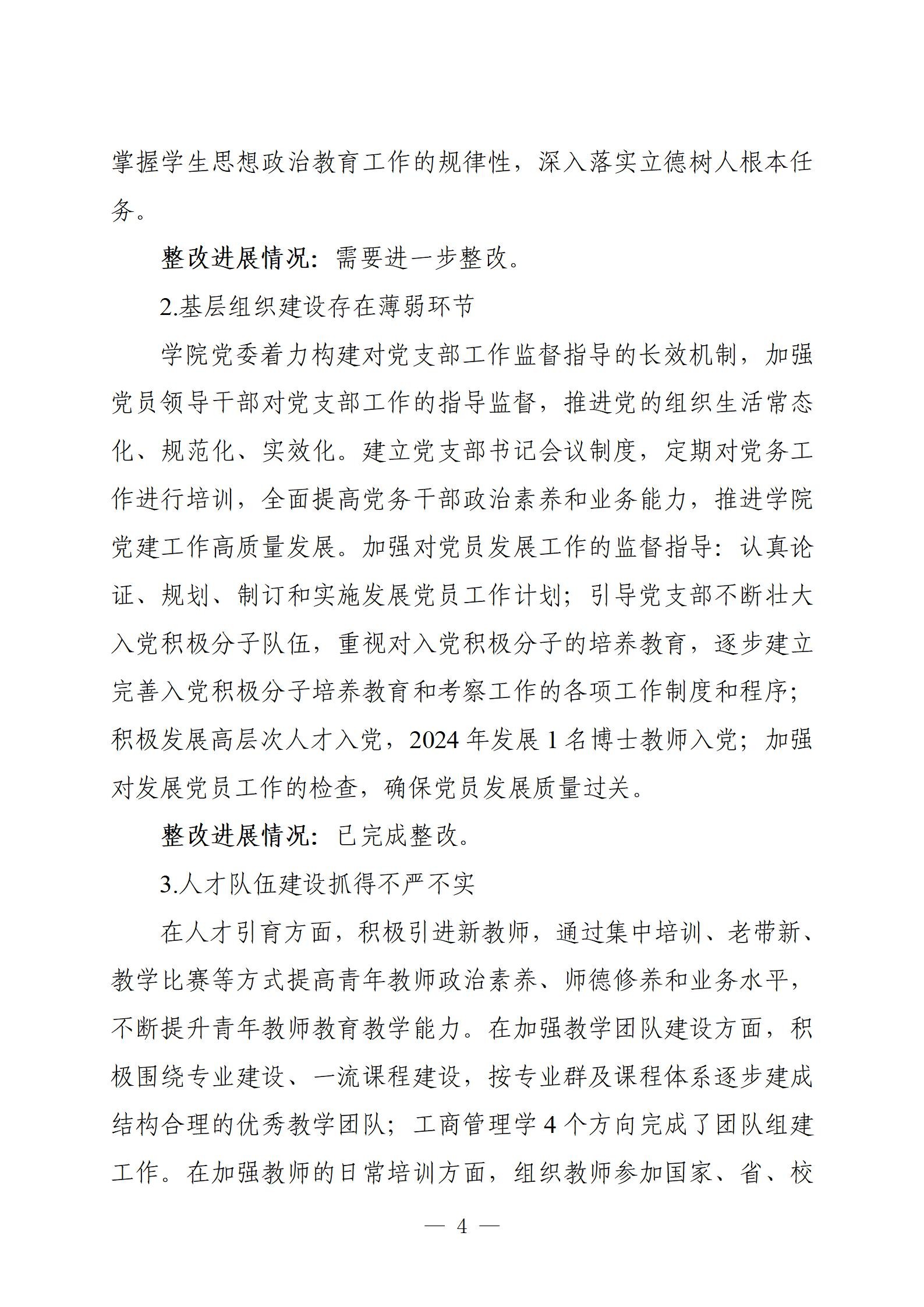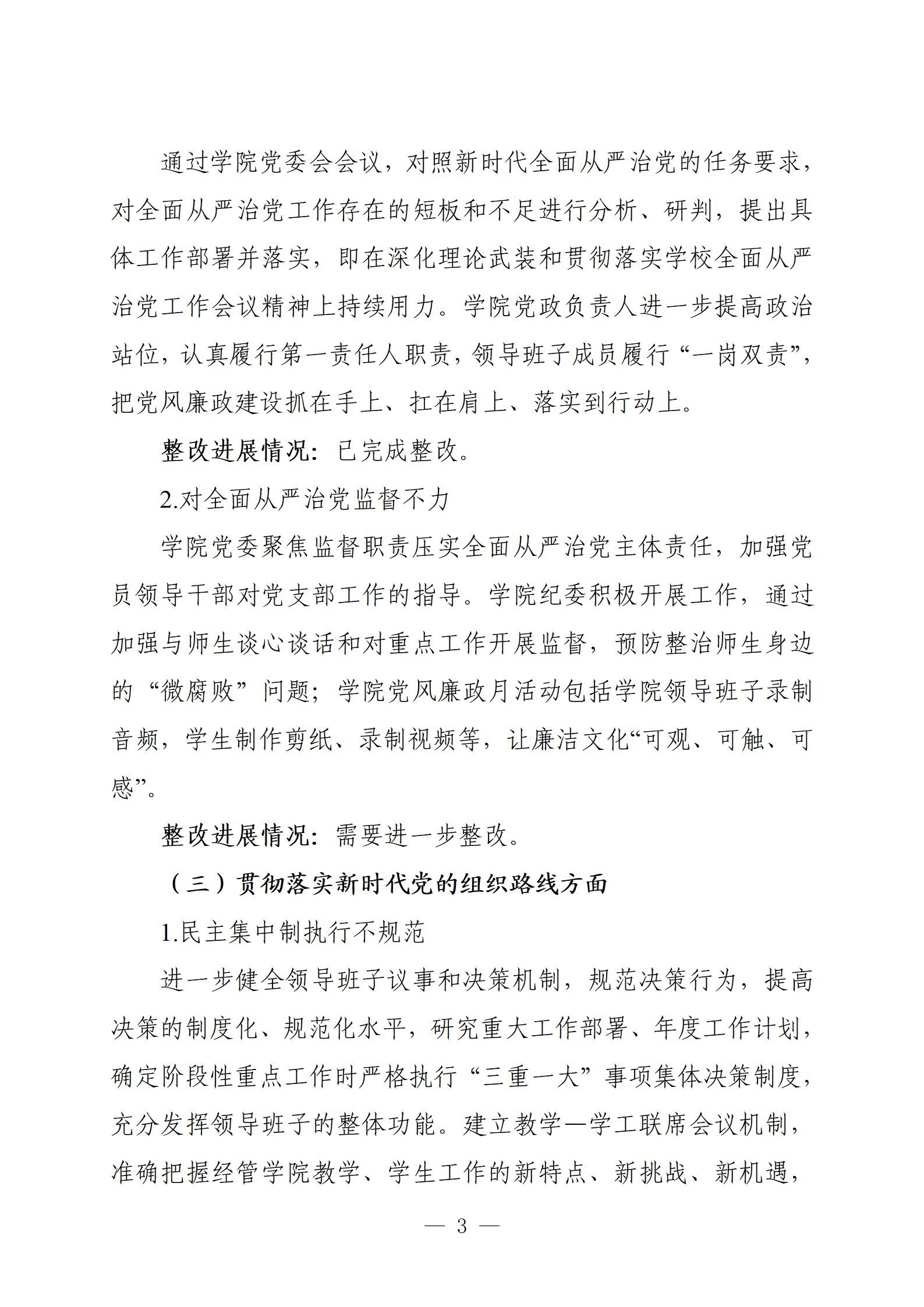 中共开运网页下载经济与管理学院委员会关于巡察整改落实进展情况的通报